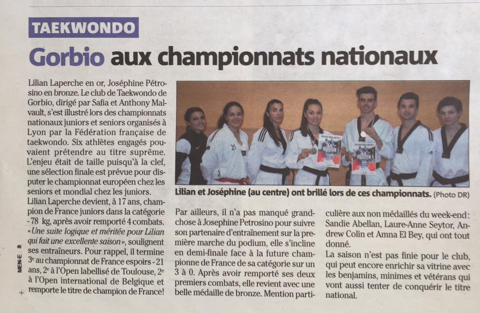 13094282_1063465520380952_4747185148271378965_n Publié 19 Mai 2016 à 960 × 626 dans La Presse parle de nous ← Précédent Suivant → Lilian Laperche Champion de France Juniors 2016, Joséphine Petrosino sur la troisième marche ! J’aime chargement…